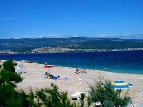 Spiaggia del campeggio Tiha - la spiaggia è di ciottoli e nelle sue vicinanze ci sono bar dove acquistare bibite fresche e snacks.